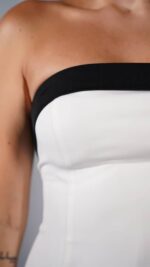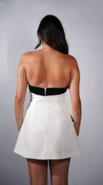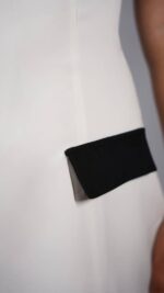 Elegant, stylish, and comfortable dress , with fake pockets and a back zipper .